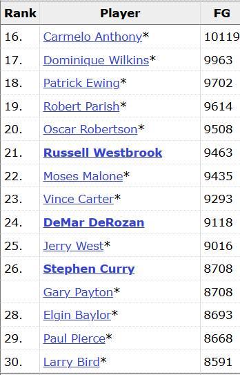 据官方统计,库里在本场比赛超越了加里-佩顿,成为了NBA历史上运动战进球数第26多的球员。在他身前的是杰里-韦斯特,两者大概有300记进球左右的差距。