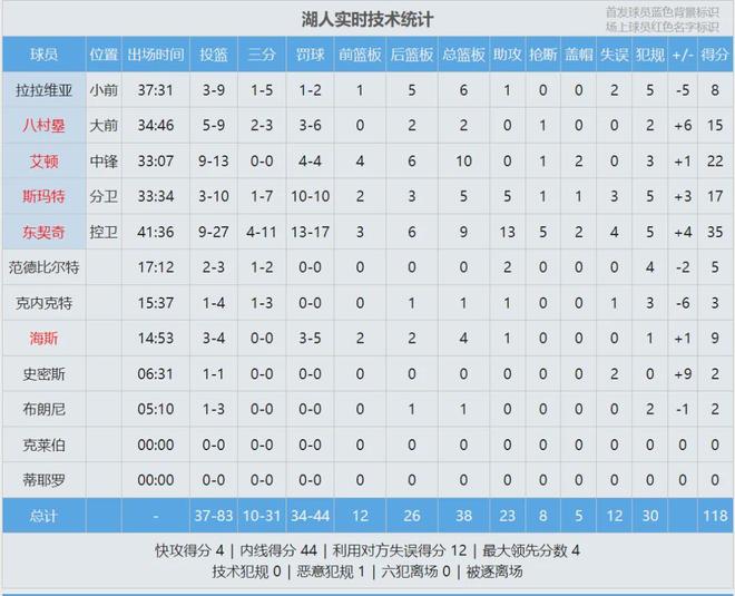 两队加起来66次犯规,84次罚球。马刺3人犯满,太惨烈了。湖人冲上西部第二,东契奇35分9板13助5断2帽、艾顿22分10板2帽。文班亚马19分8板3助,外加5次失误和6次犯规,连续两场迷失。最后看看数据,说说你的心情: